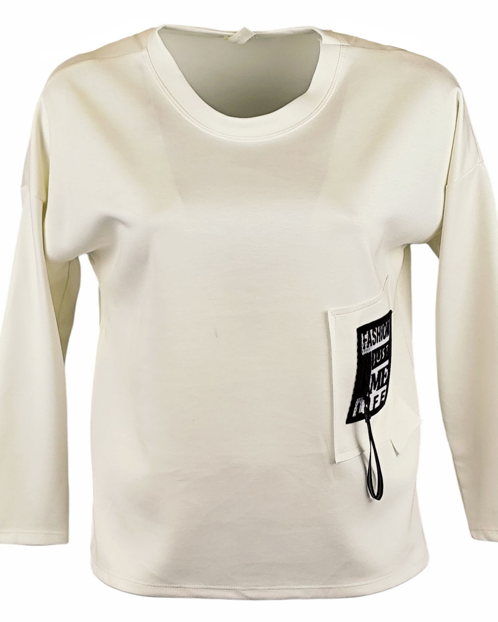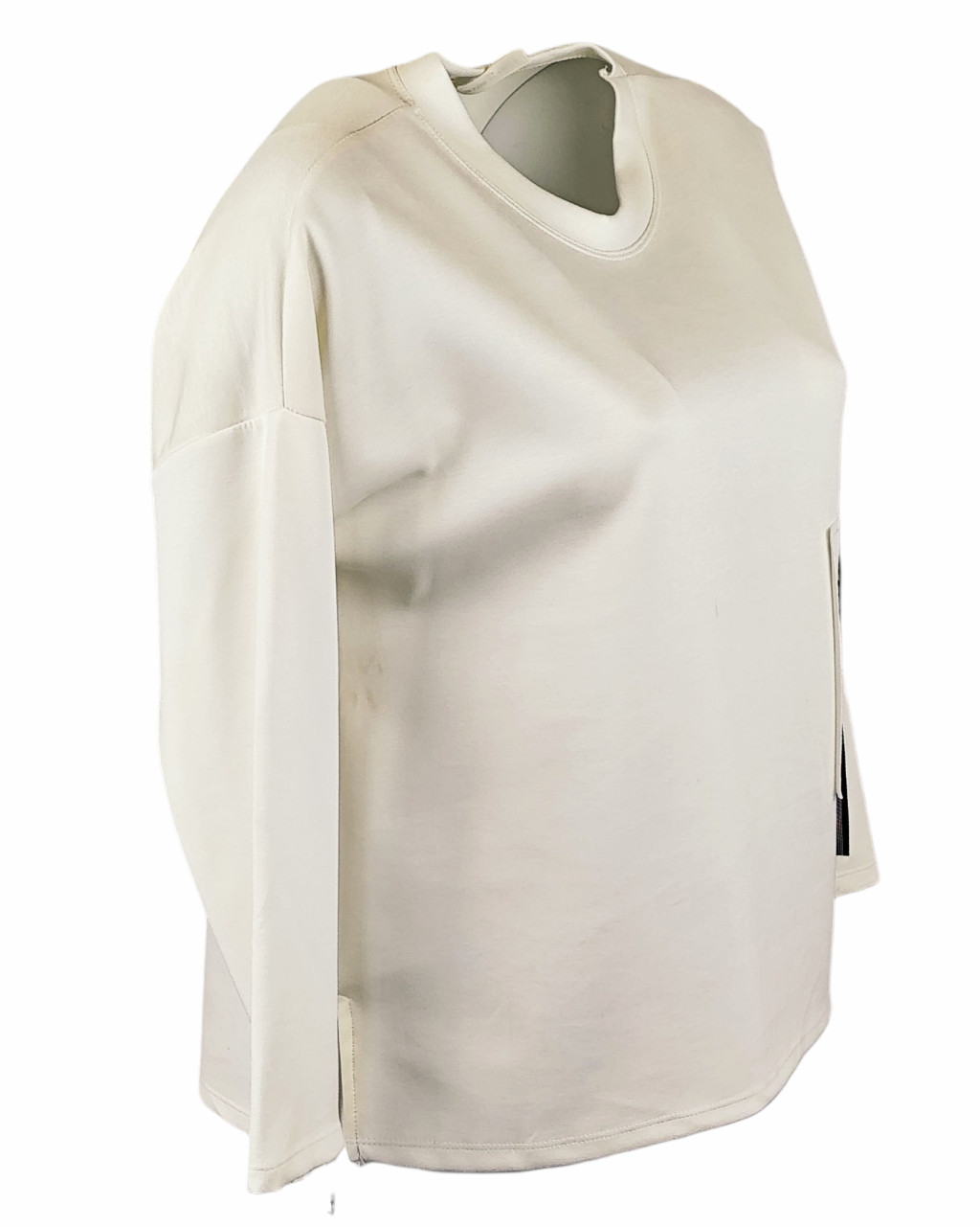 Egyszínű, puntó anyagból készült, molett, hosszú ujjú, környakú, olasz pulóver- krémfehér