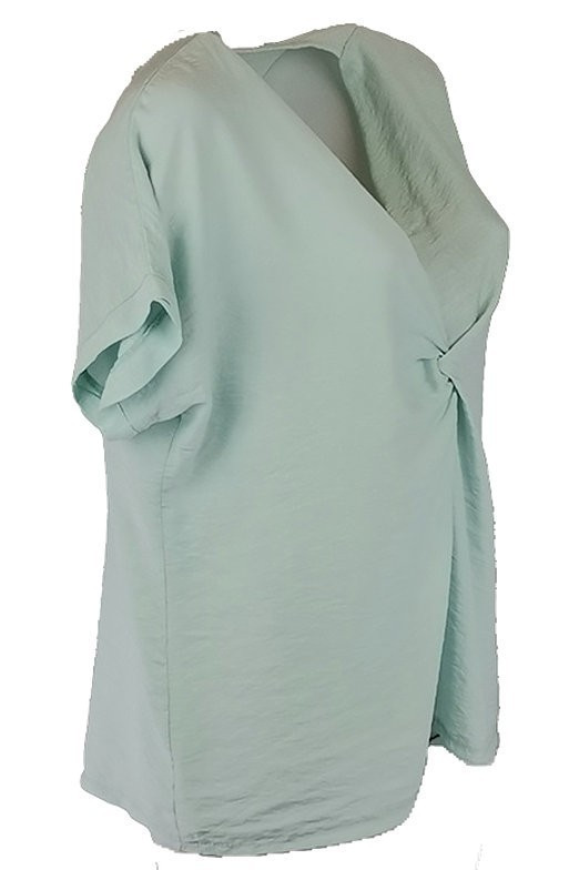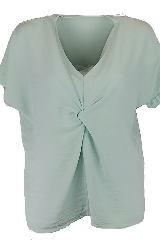 Katy, csomós elejű, egyszínű, V-nyakú, rövidujjú,fiatalos olasz alkalmi felső - almazöld