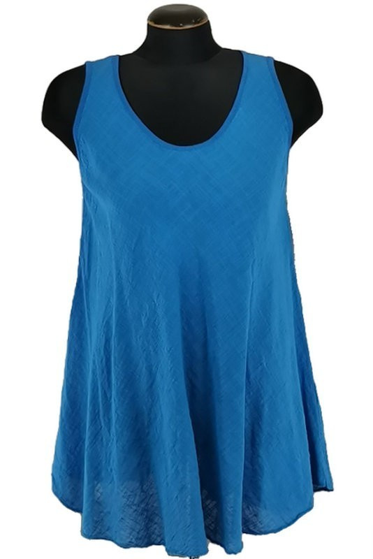 Egyszínű, "A"-vonalú fazonú, géz, ujjatlan felsőrész- királykék