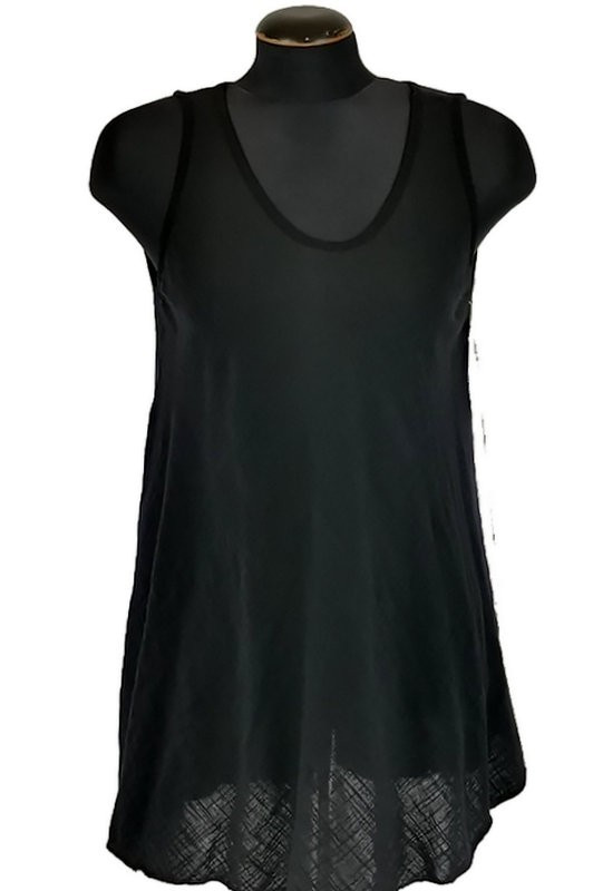 Egyszínű, "A"-vonalú fazonú, géz, ujjatlan felsőrész- fekete