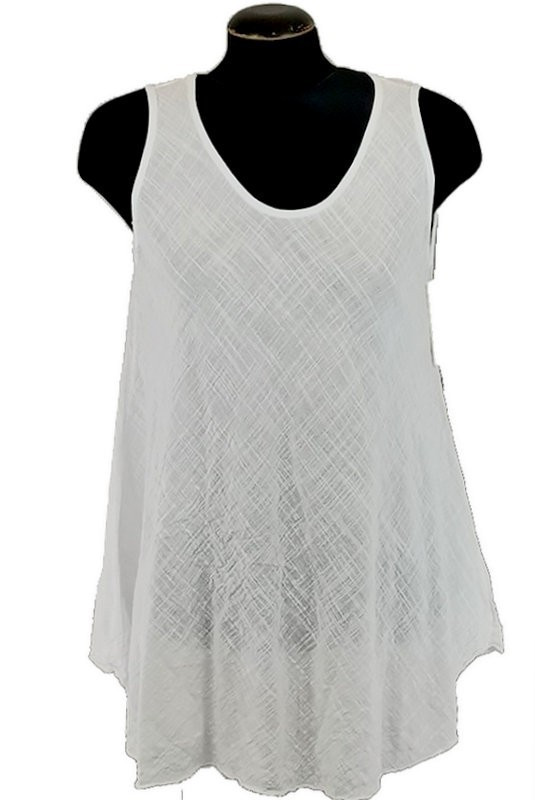 Egyszínű, "A"-vonalú fazonú, géz, ujjatlan felsőrész- fehér