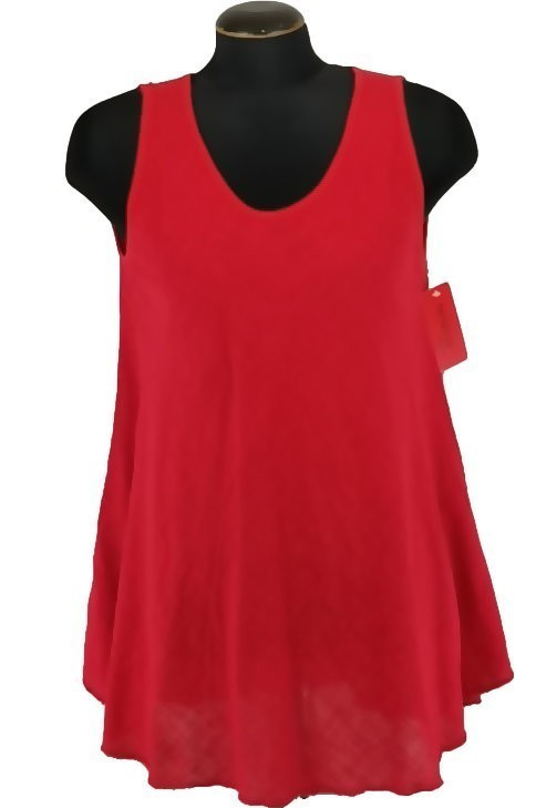 Egyszínű, "A"-vonalú fazonú, géz, ujjatlan felsőrész- piros