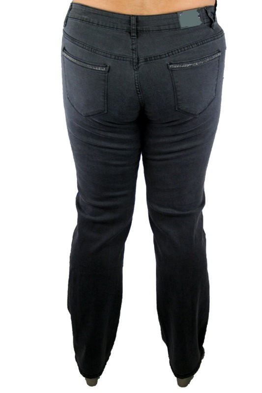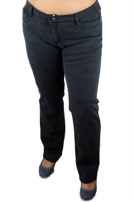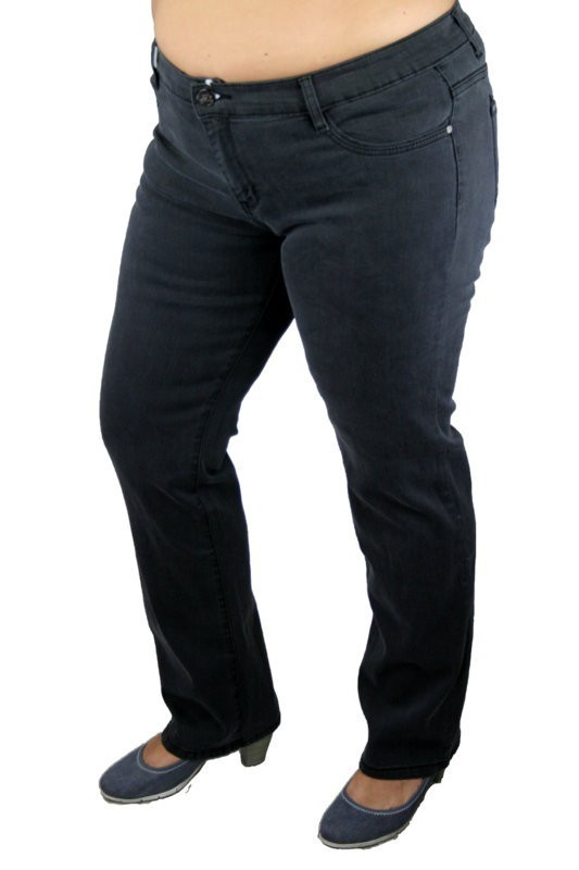 Sötét szürke, magas derekú, hosszú egyenes párhuzamos szárú, molett farmernadrág- sötét szürke