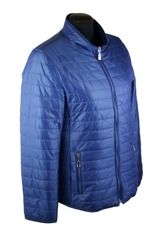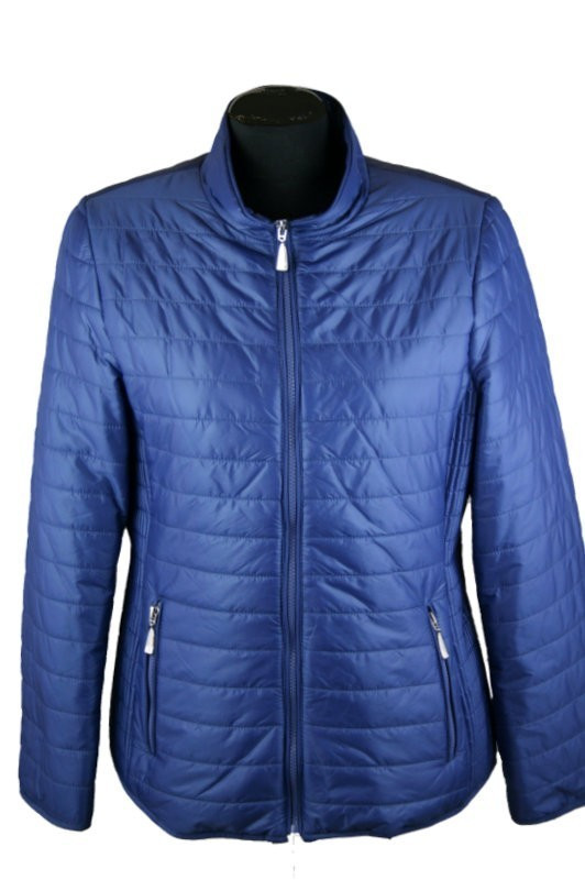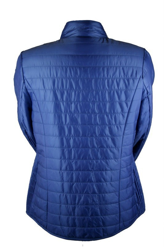 Álló nyakú, steppelt, egyszínű, cipzáras, béléses, csípőig érő fazonú, fiatalos steppelt olasz dzseki, cipzáras zsebekkel- kék