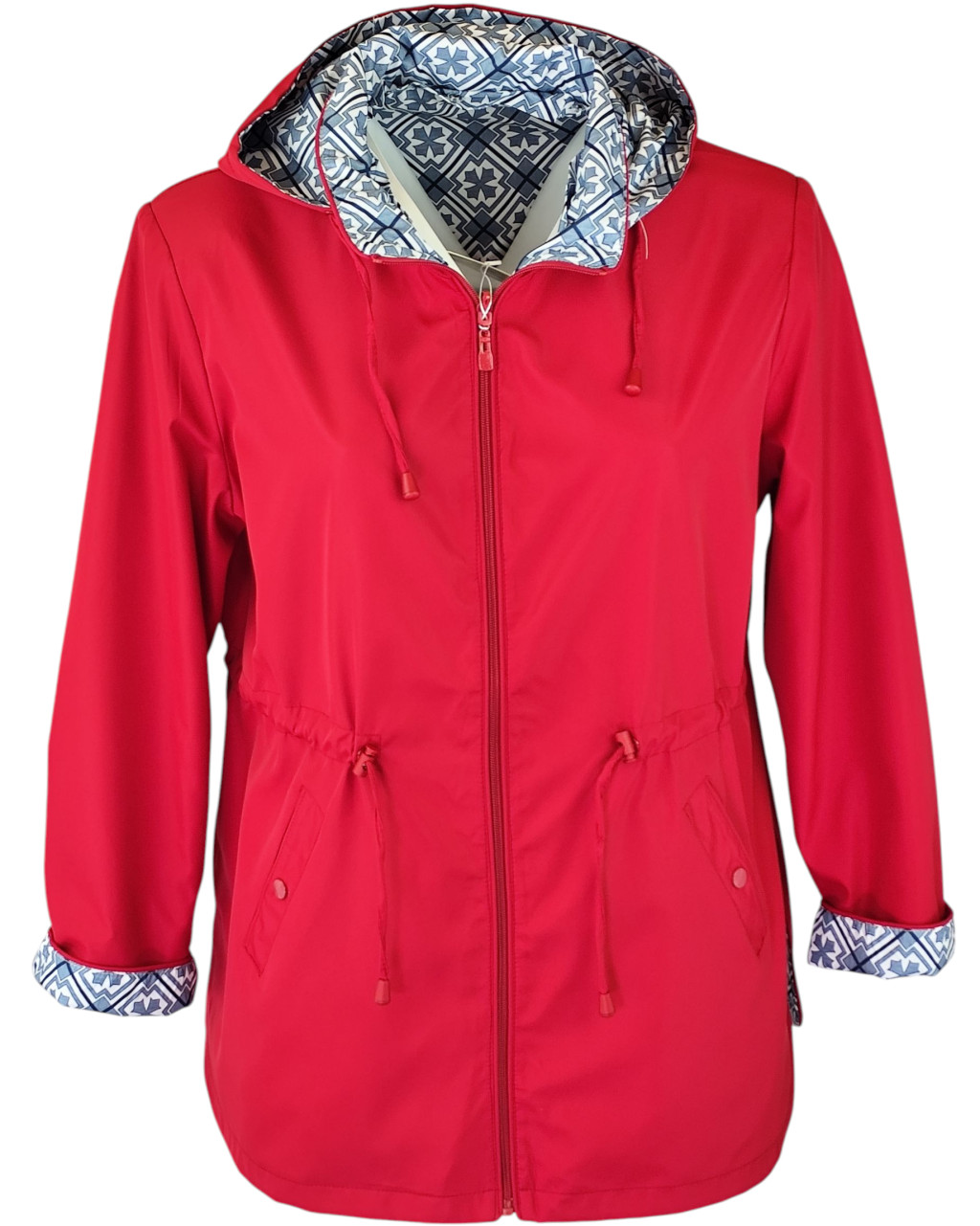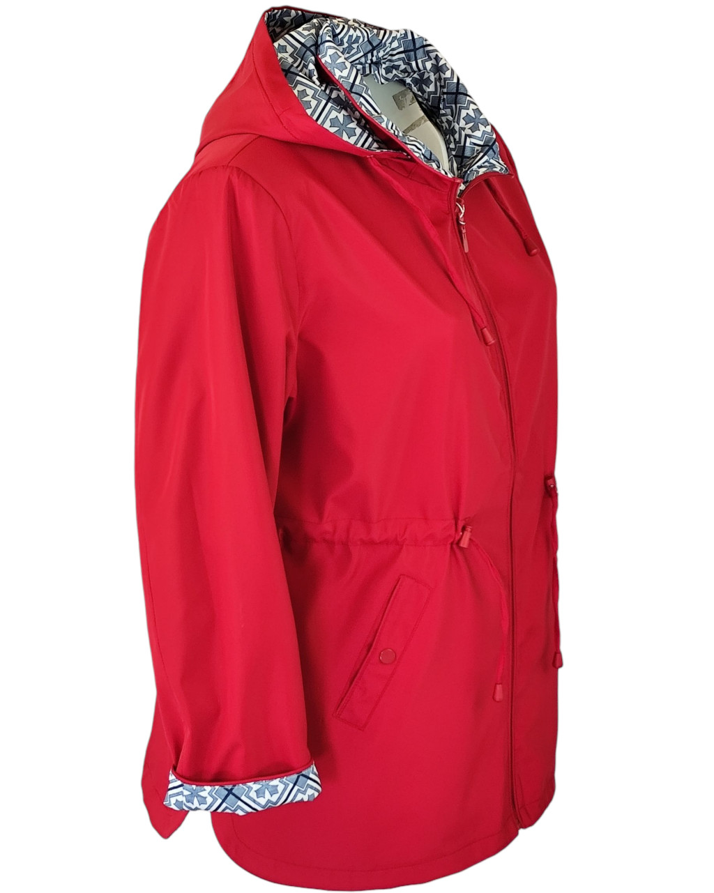 Fency ki-be fordítható, átmeneti, kapucnis, ballon-szerű kabát- piros