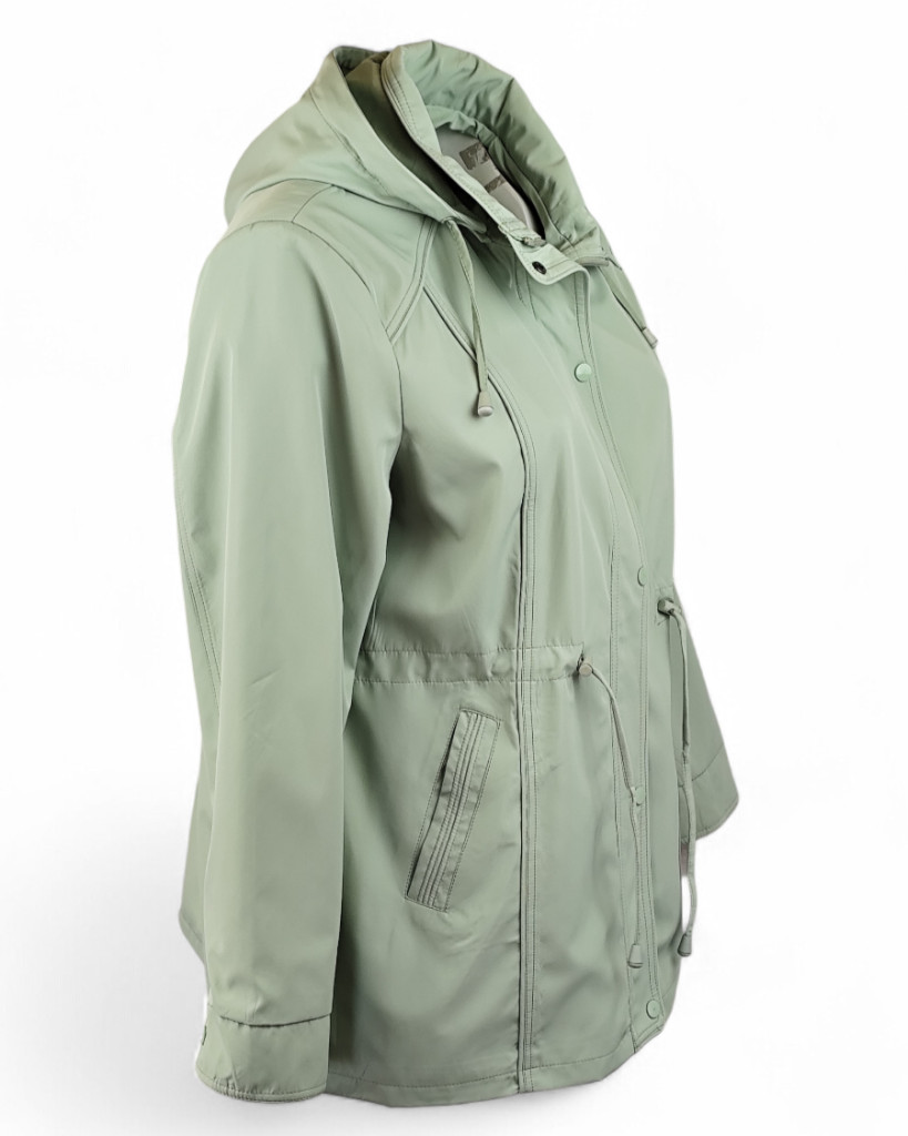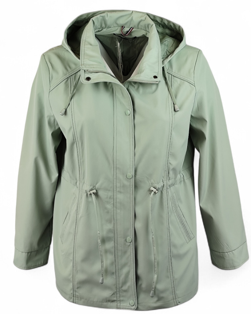 Fency egyszínű, kapucnis, cipzáras, ballon-szerű, béléses, átmeneti kabát- világos menta zöld